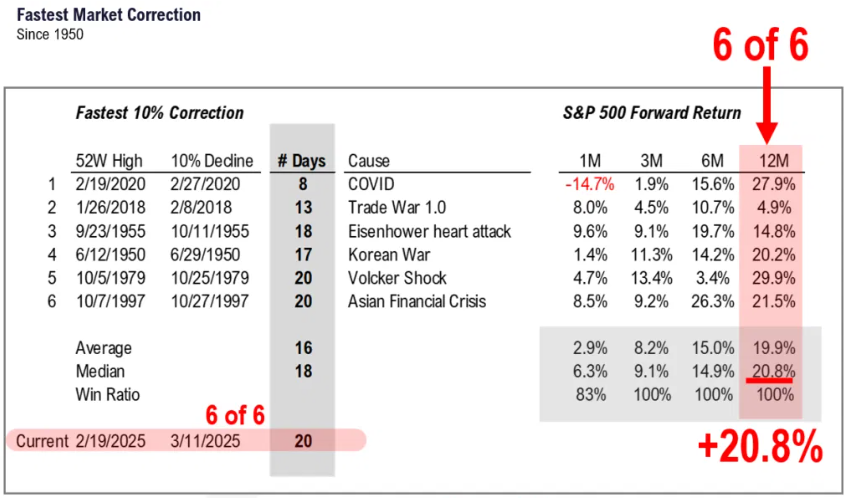 Brett: 10% market corrections have historically happened every year or so, but only 4 in the past 75 years fell faster than this one