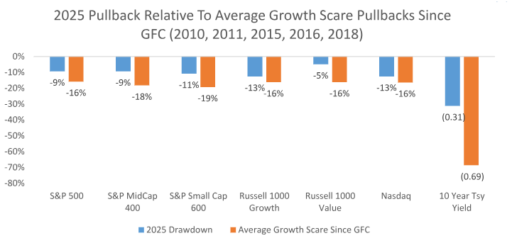 Brad: You can see how this selloff ranks among recent growth scares, tame to this point