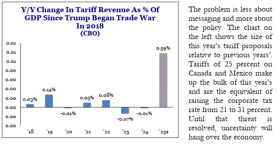 Brad: The bite of tariff impact may well end up less impactful than the bark, but still a potential drag on growth