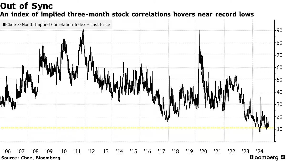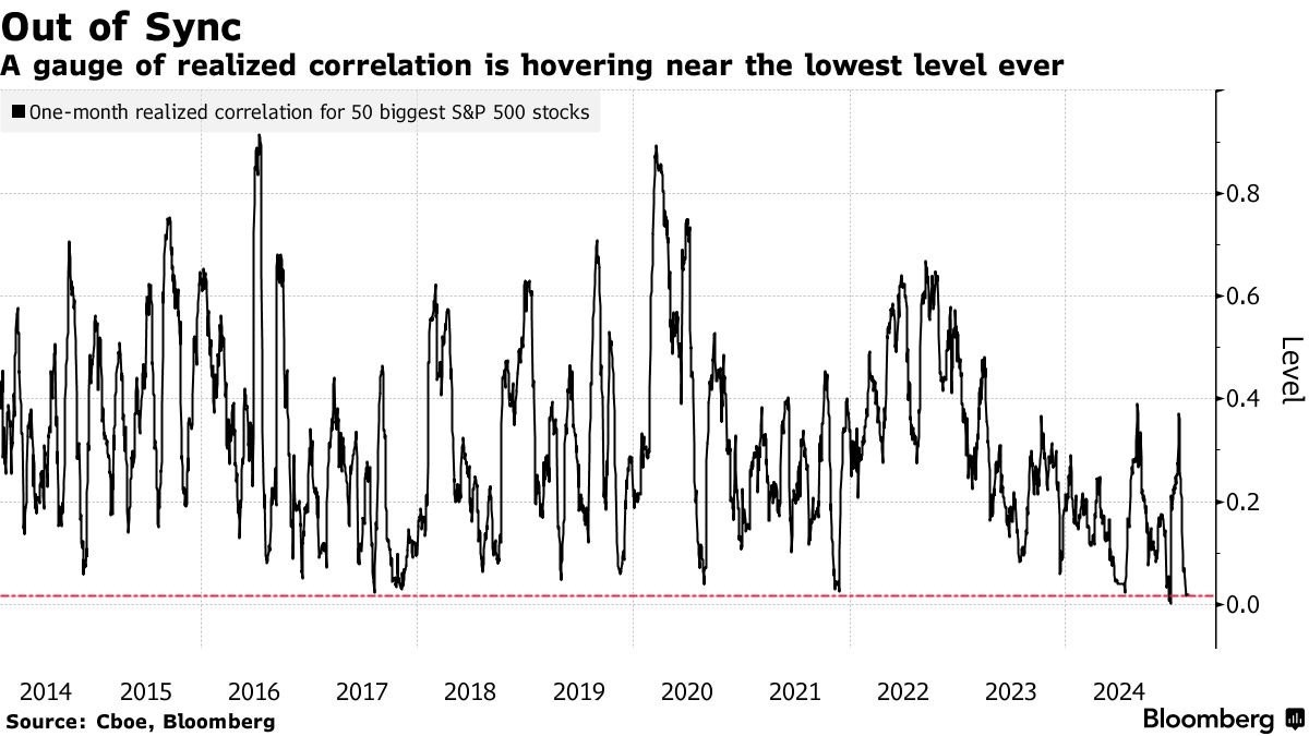 Brad: The correlation between individual stocks has fallen to extreme levels
