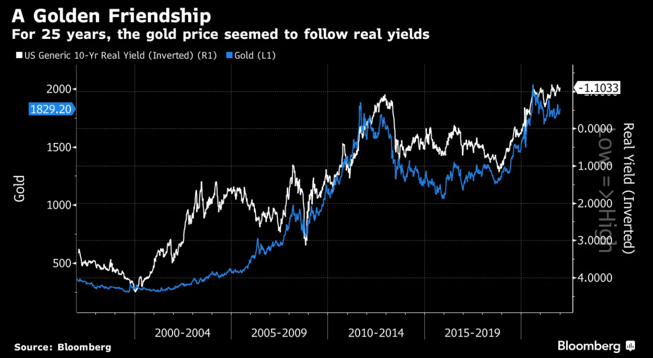 John Luke: For years, the price of gold followed closely along with real yields
