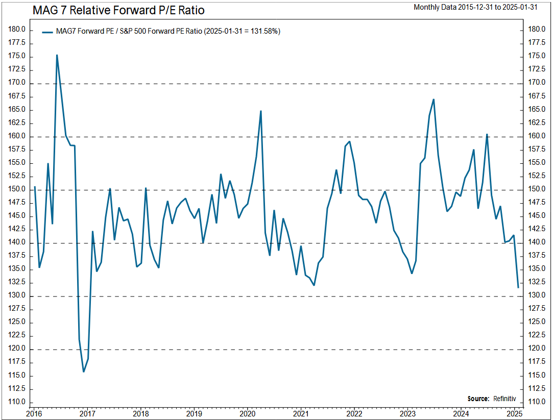 John Luke: Megacap techs have been popular targets of “overvaluation” calls, but their valuation relative to the market is actually normalizing through strong earnings