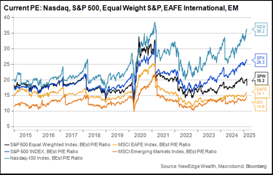 Dave: which has not only increased earnings but widened valuation gaps between the US and foreign indices