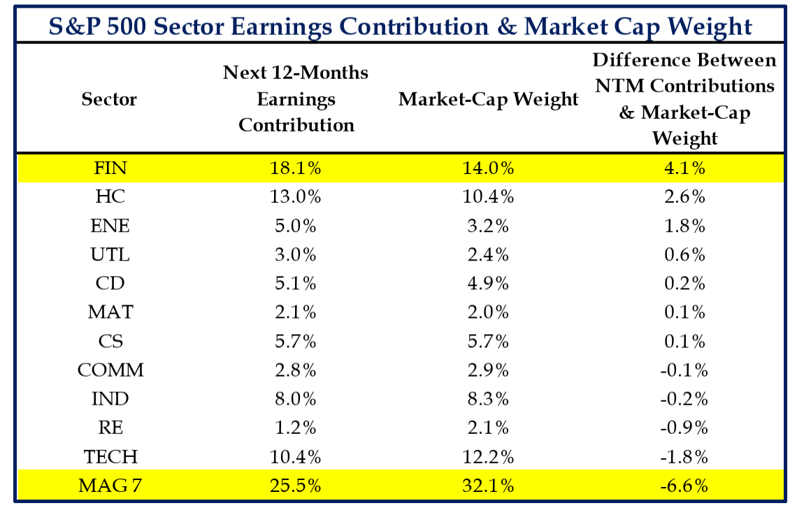 Dave: Megacap tech earnings comprise a huge chunk of overall S&P 500 earnings, but an even bigger chunk of market capitalization