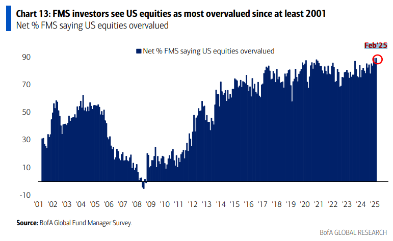 Brian: unlike the concern that US stocks are overvalued vs. peers, which has persisted throughout the past 10 years