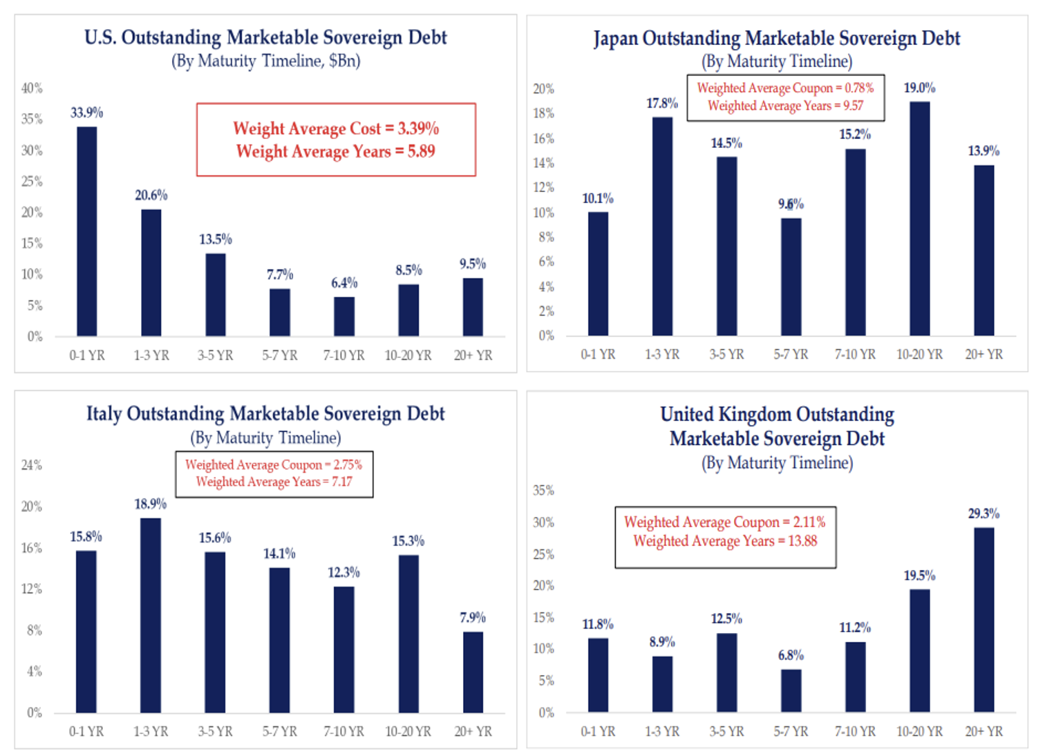 Surprising to most, the US debt maturity wall is more concerning than many other highly indebted countries like Japan, Italy, and the UK.