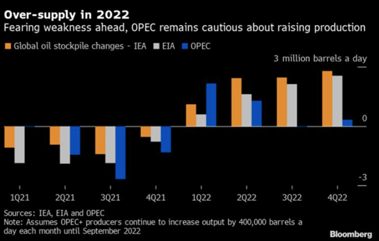 Many analysts believe that while the current market is still undersupplied (by somewhere in the area of 1-2 MMBls/d), that will alleviate itself as OPEC brings back spare capacity through its reverse taper and reinvestment elsewhere brings new product into the market. Indeed, the same three agencies which forecast a return to 2019 demand levels in 2022 see the market as being oversupplied for the year.