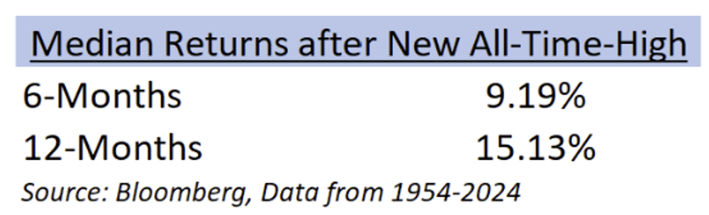 So, let’s look at the market’s tendencies after it hits an all-time high and see if there is anything that we can learn from the past.
