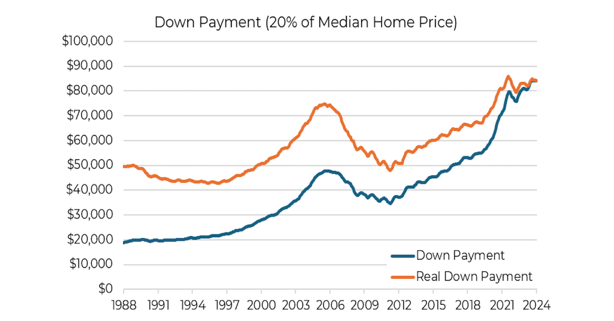 The housing market today is caught in a strange juxtaposition. While home prices and down payments are elevated in dollar terms, they remain within historical norms when adjusted for income. In contrast, mortgage payments have spiked at an unprecedented rate given the abrupt shift in rates, leading many to question if homeownership is becoming increasingly out of reach.