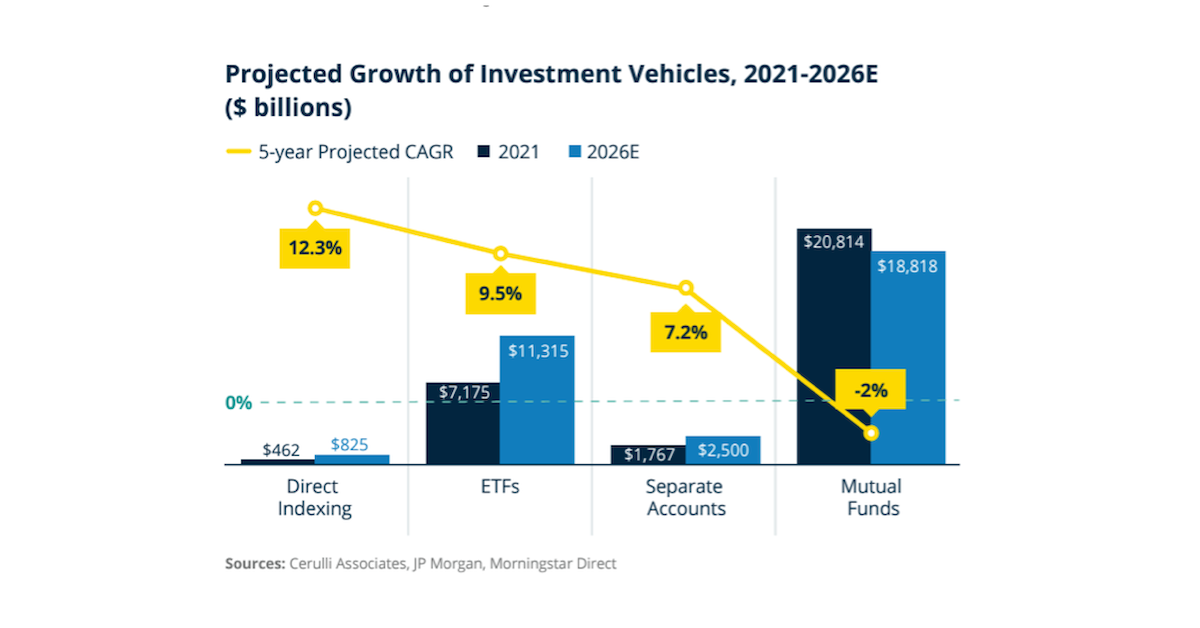 There has been much ink spilled on the topic of the explosive growth in the ETF space over the last few years. For this author who came into the profession when the mutual fund was still King (and I still had hair), it has been astonishing to watch that regime shift. Interestingly though, there is another form of investment that is on track to grow even faster than the move towards ETFs over the next five years and that is direct indexing.