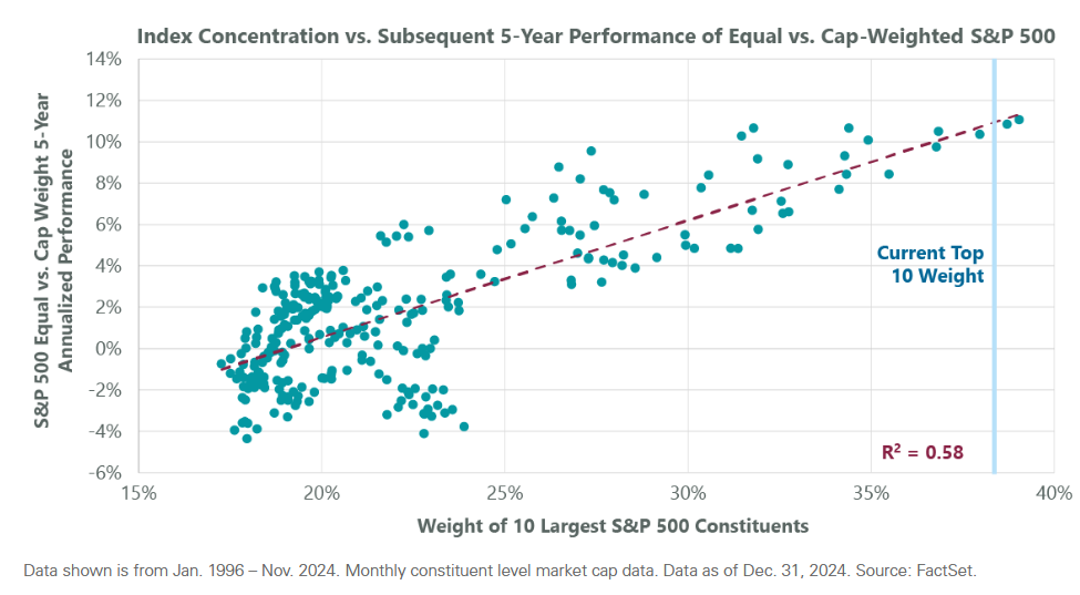 Brian: Smaller companies as measured by the equal-weight S&P 500 have done well after past instances of high market concentration