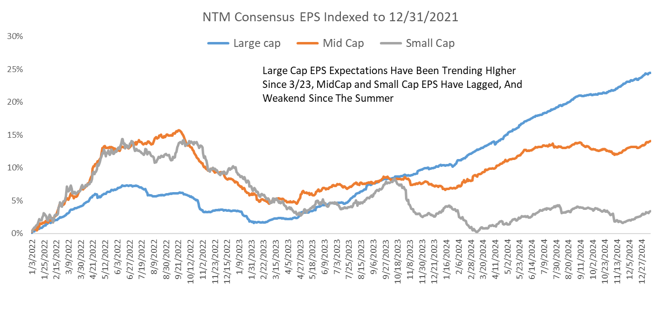 Dave: We’d all love to see small caps run higher, but large caps have been the home of better earnings