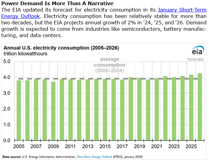 Brad: Speaking of historically low growth, electricity generation has been consistently slow but is seeing an upturn as technology needs advance