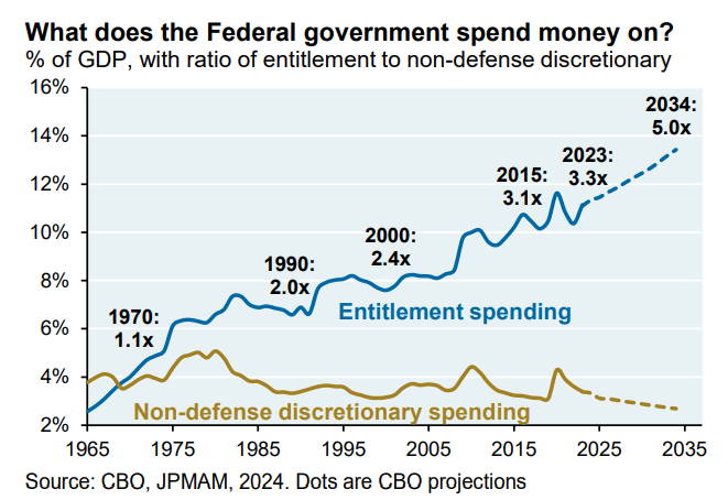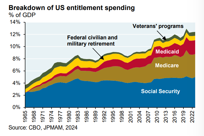 JD: Less secure is the US government, with not only high levels of spending but most of it hard to control without unpopular policy changes