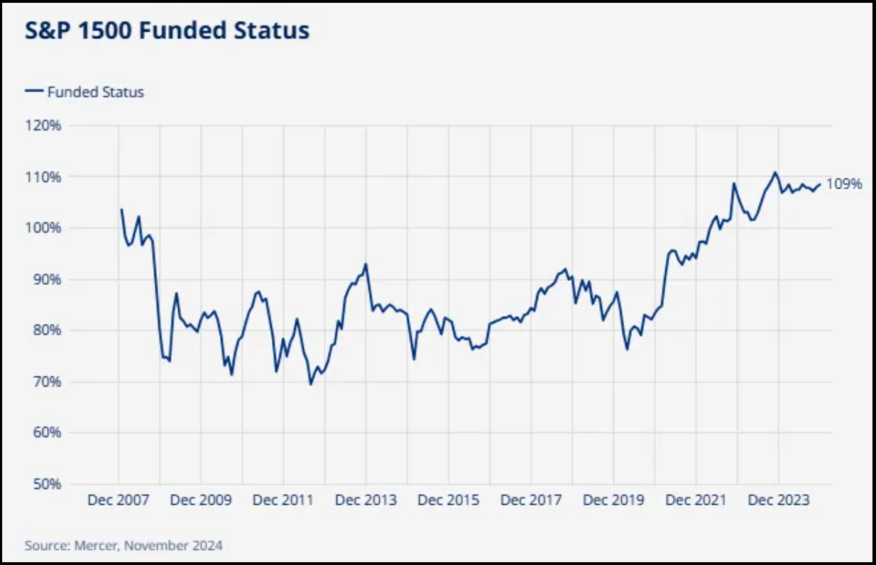 Arch: combined with higher interest rates, the equity rally has put large public company pensions in their best position in decades