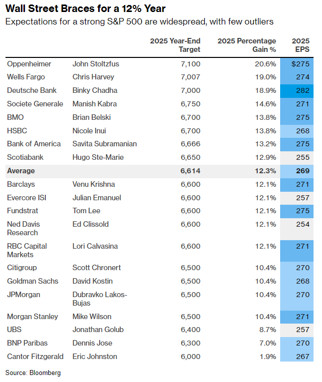 Dave: After two years of falling far short of S&P 500 prices, strategists are far more aggressive with their 2025 targets
