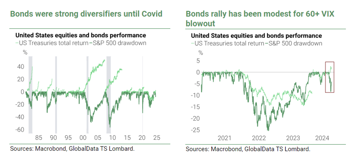 Of note, bonds did rally during the early August vol shock, however, the drop in yields was relatively modest and it remains unclear how well non-recessionary risk asset selloffs will be cushioned by bonds going forward.