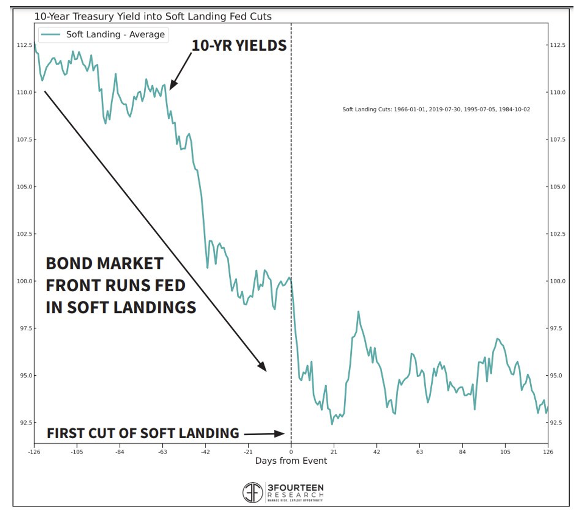 The problem with the race to buy bonds now is that history has shown us that, in a soft landing, markets front-run yields before the first cut and yields then tend to level out. A bond investor must consider the after-inflation and after-tax return…when you pair that with the potential for higher correlations to risk assets, we’d be careful.