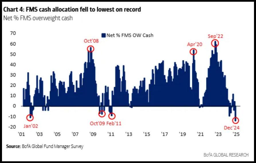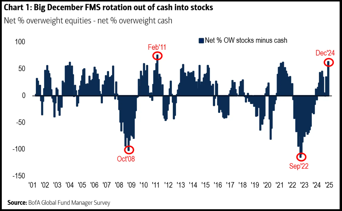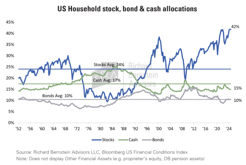 Brett: Despite headlines of “cash on the sidelines”, US investor have generally let their equity allocation drift higher with the move in stocks