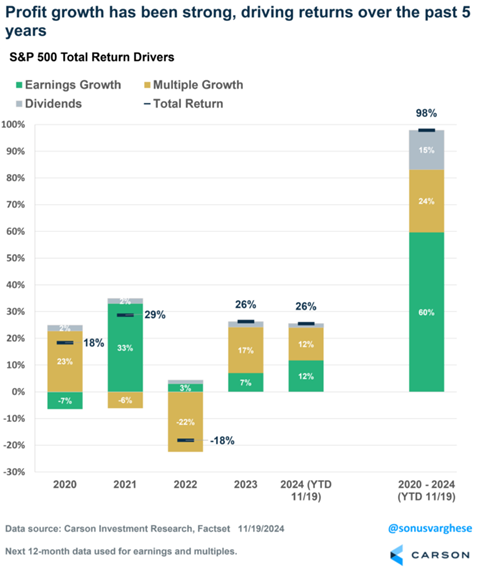 Dave: As much as investors slam the market as driven by a few big tech names, it’s been mostly explained by their fundamental performance