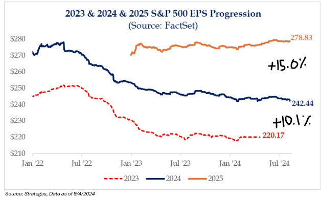 Below are the current earnings growth expectations (before potential tax ramifications). Simply said, if tax policy was enacted to increase the corporate tax level, and if analyst estimates are correct, the S&P 500 could still witness positive earnings growth in 2025.