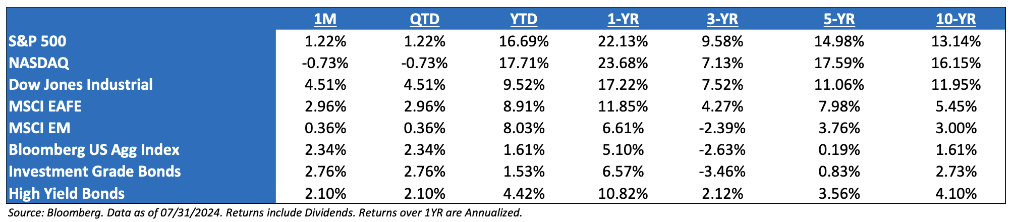 *Source: Bloomberg and FactSet, Data as of 07/31/24