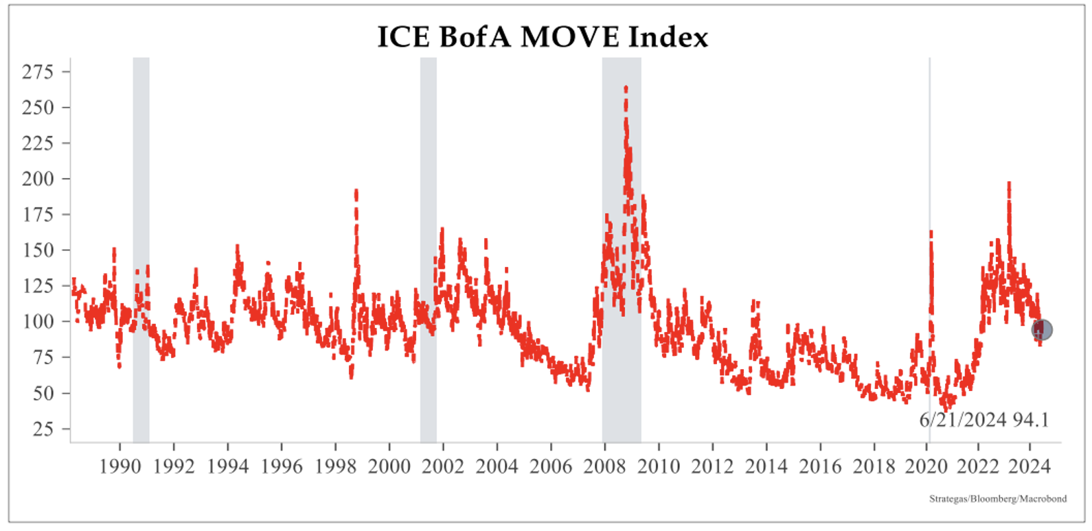 The MOVE index has been closely followed by bond investors as a gauge of the underlying stress of the rates market. We’ve described the MOVE index as essentially the VIX but for bonds.
