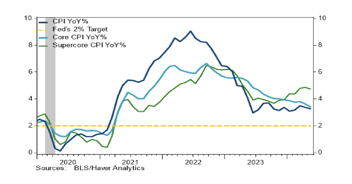 This was the lowest core print since August 2021 and headline print since July 2022. We believe this print gives the Fed confidence they can be more dovish in their commentary following the strong payrolls and wages last week. In addition, supercore inflation (core services excluding shelter CPI) fell 4bps, its first decline since last fall.
