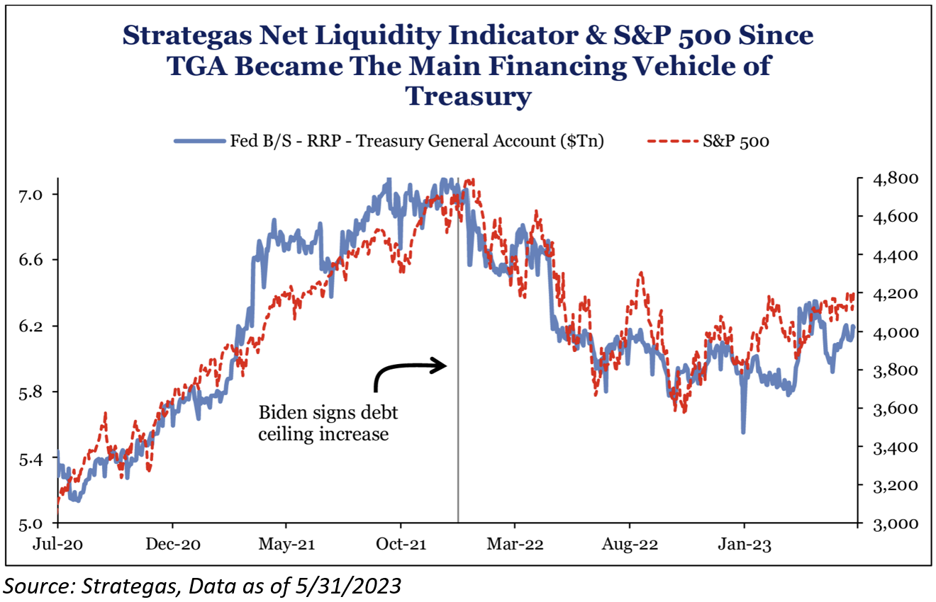 As many of y’all have heard from us, one of our main focal points has been the impact of the new issuance of treasuries on market liquidity. Since January, Uncle Sam’s checking account, officially known as the Treasury General Account (“TGA”), has been spending down the available capital to pays its bill since the government was unable to issue treasuries (they were at the debt ceiling). Now that a bill likely appears that it will be passed, the US Treasury is going to need to issue a substantial amount of US Treasuries (“UST”) to replenish the TGA. Morgan Stanley estimates the Treasury will sell over $1 trillion in short-term debt through the end of the third quarter. For reference, during the last extension in 2019 saw then-Secretary Mnuchin issue nearly $1T with little drama. That was then and there are a few differences now.