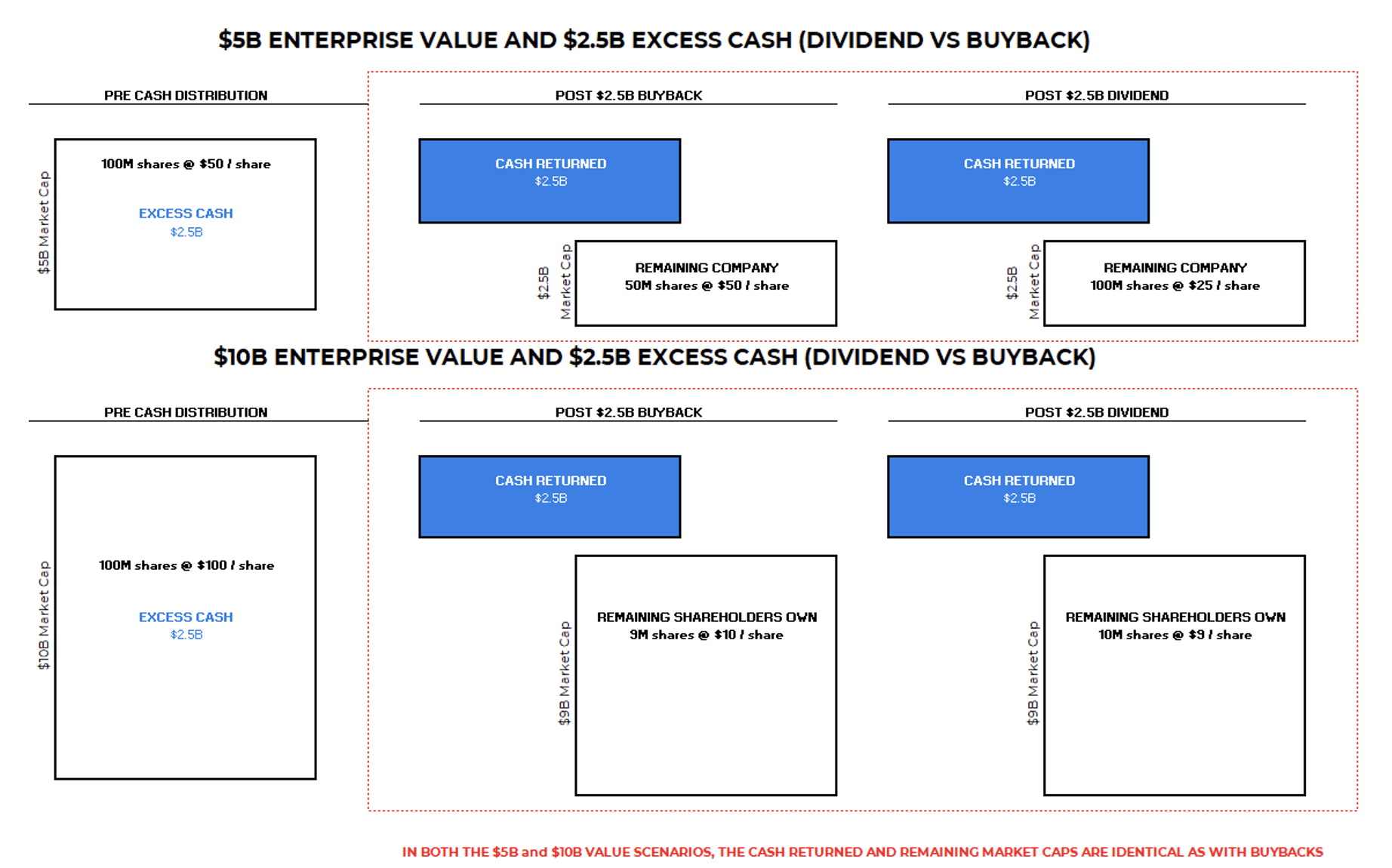 - Scenario B: $5B Market Cap Company Returning $2.5B