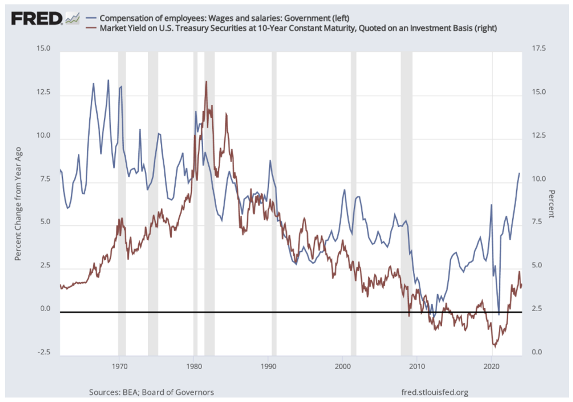 Meanwhile, the rate of compensation increases for government employees is running over 2x the current yield on a 10-year bond.