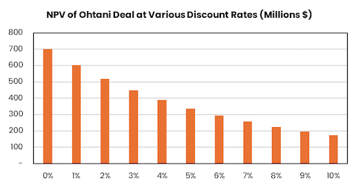 Enter the concept of present value—a financial mechanism used to determine the current worth of future cash flows. Using an 8% discount rate, reminiscent of the historic Bobby Bonilla New York Mets contract deferral (a chilling thought for this lifelong New York Mets fan), the present value of Ohtani’s contract plunges to a “mere” $224 million over its duration.