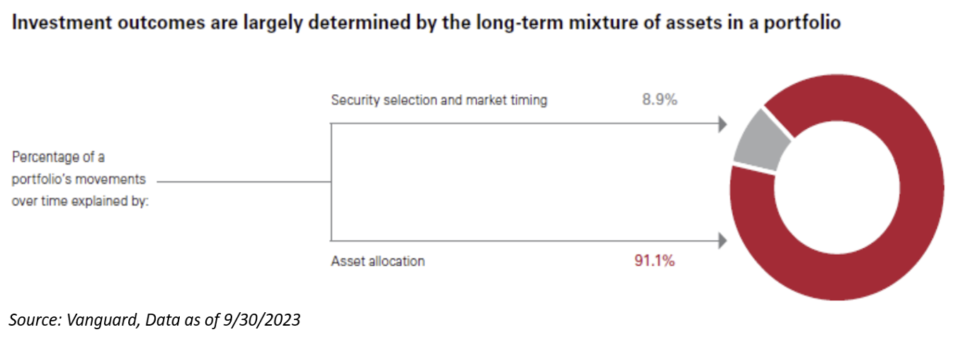 The seminal 1986 study by Brinson, Hood, and Beebower showed that asset allocation decisions were responsible for 91.1% of a diversified portfolio’s return pattern over time.