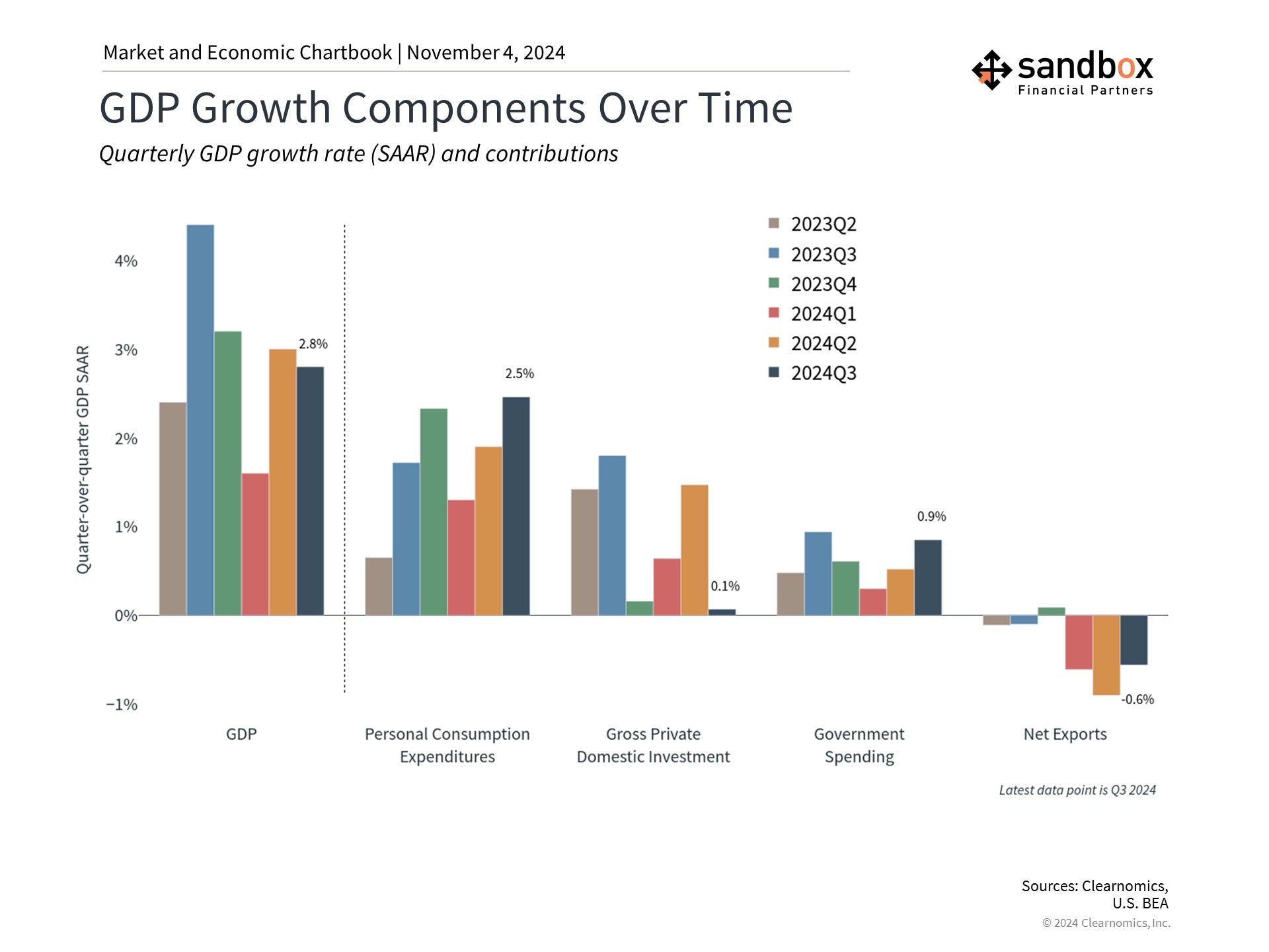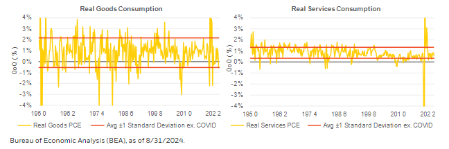Brad: The US economy has become more tied to services than goods in recent years, resulting in less volatile swings