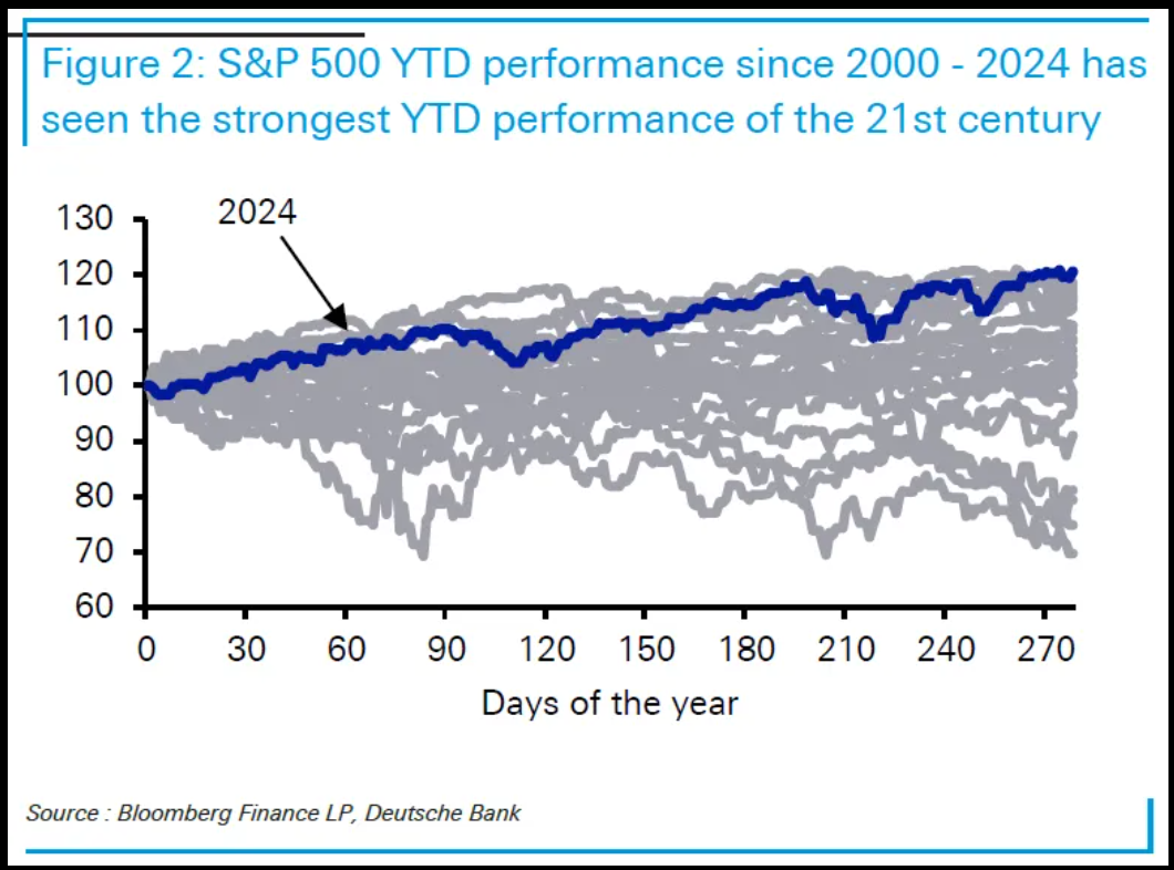 JD: To this point of the year, the advance in the S&P 500 beats every other year this century