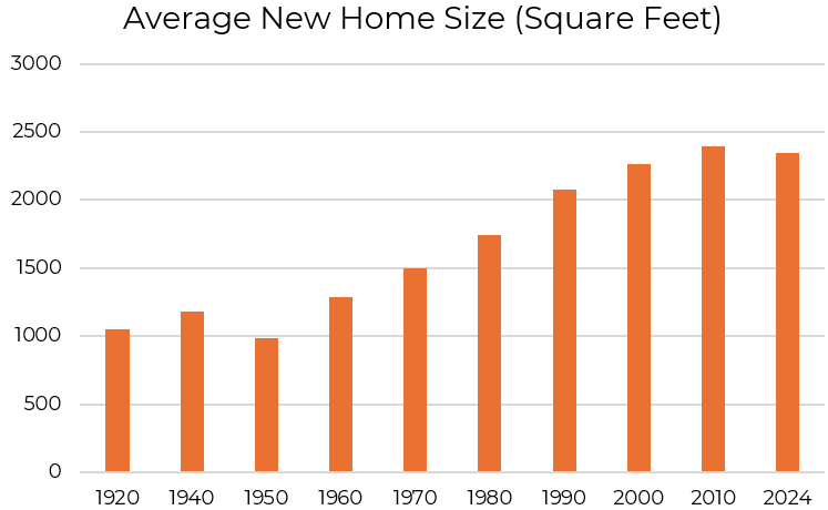 Brian: Yes, homes used to be cheaper. They were also way smaller (and used to lack plumbing). In 1950, most homes were well under 1,500 square feet, while today, less than 25% are under 1500 square feet. Today, buyers want offices, islands, and three bathrooms. Adjust your nostalgia accordingly.