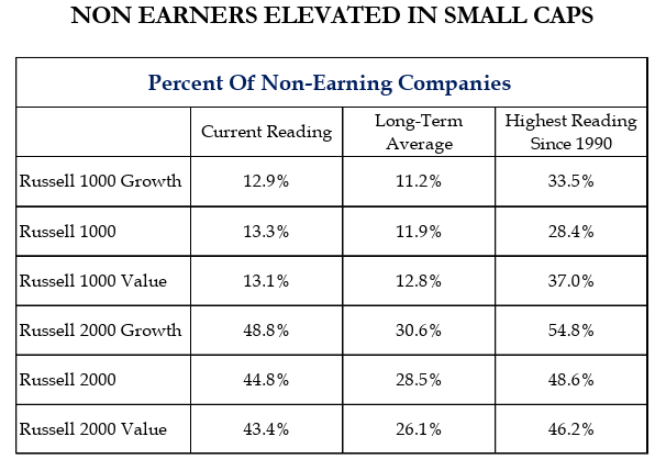 Dave: Investors can own small caps at a discount, but in many areas that discount may be justified. While that’s not unusual during speculative episodes, the current level suggests that broad small-cap exposure is still littered with unprofitable firms. An allocation to higher quality small-caps may be the antidote.