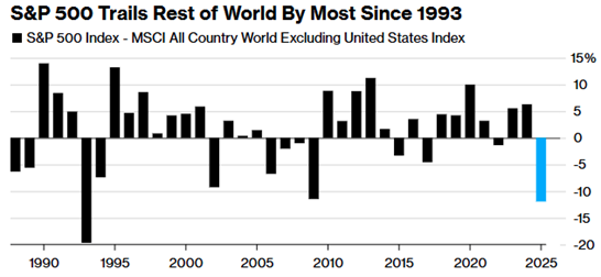 Joseph: Despite the bounce in May, the U.S. market is trailing international markets by the widest margin year-to-date since 1993.