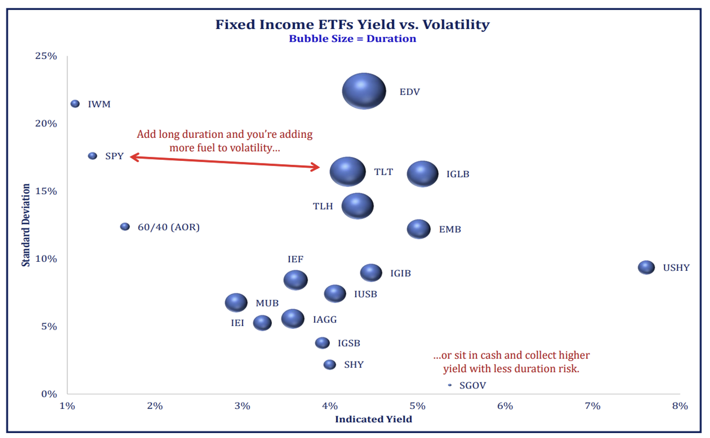 While the label reads “Treasuries”, the (duration) risks embedded have been severe. On the other hand, cash-like ETFs continue to yield more with no volatility effect.