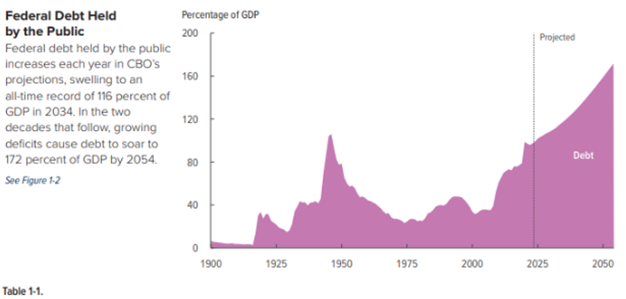 The Congressional Budget Office estimates that there will be $20 trillion worth of cumulative fiscal deficits over the next decade. Further, they assume that interest rates will be lower than they are currently and that no recessions will occur.