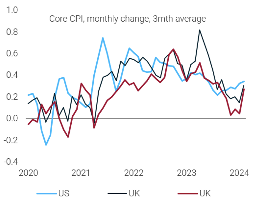 Looking back, and given the breadth of previous price pressures and the interactions between various components of the CPI, perhaps this was to be expected (the last mile is hard). Ultimately the last 6 months have provided three months of progress followed by three months of disinflation stalls. Will markets extrapolate the last couple of CPI prints, or look past it and presume disinflation will continue?