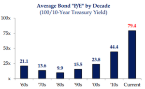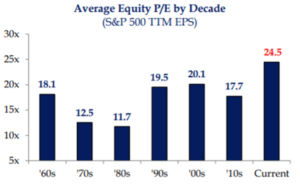 Stocks can provide capital appreciation and dividends into our portfolios while historically bonds have provided income and stability. Moving forward, we are faced with an environment of elevated multiples on stocks and abysmally low interest rates on bonds. The market environment we are walking into is potentially VERY different from what we experienced the last 30-40 years where interest rates went from 15% to 0%.