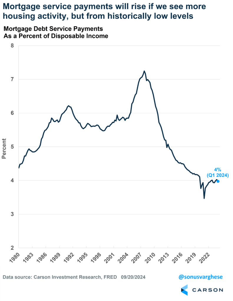 JD: One area that’s been hugely supportive of the economy this decade has been the low cost of existing mortgages