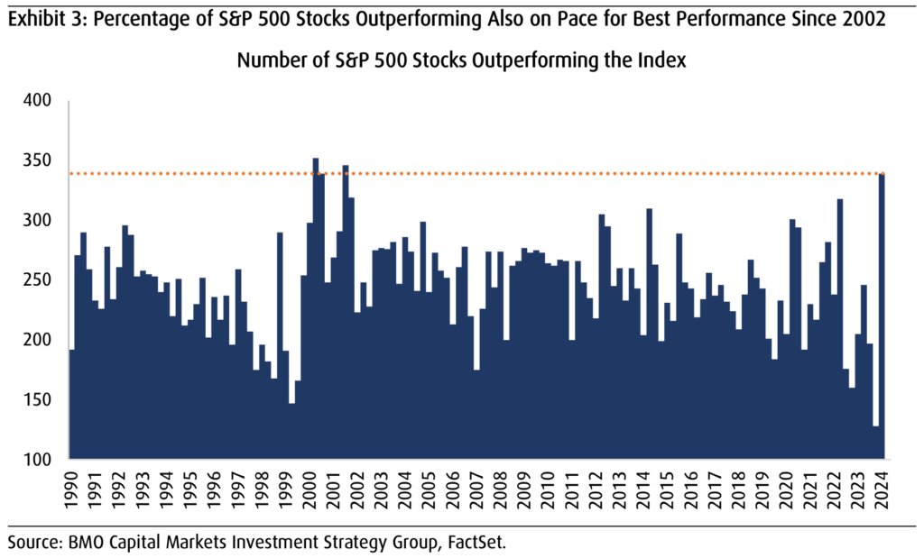 Brad: We’re also seeing improvement from the broader list of stocks, vs. prior dominance by megacap tech