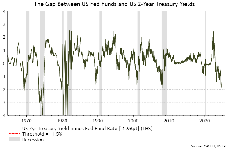 Arch: Historically, rates on 2-year Treasuries being this far below the Fed Funds rate has been a precursor to recession