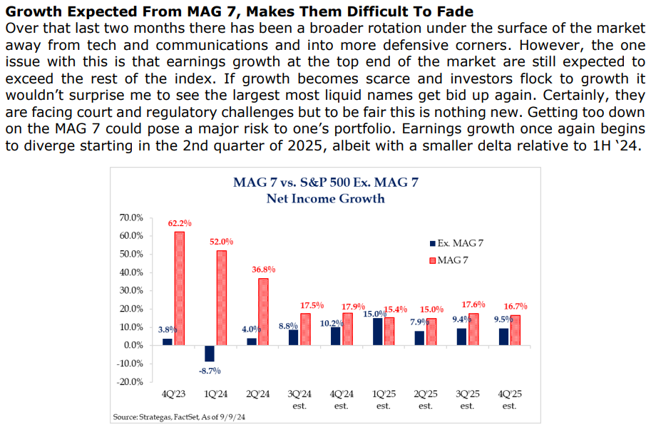 Dave: We’re entering the window when the broader market is expected to produce earnings growth closer to what we’re seeing in the to-date dominant Mag 7 results