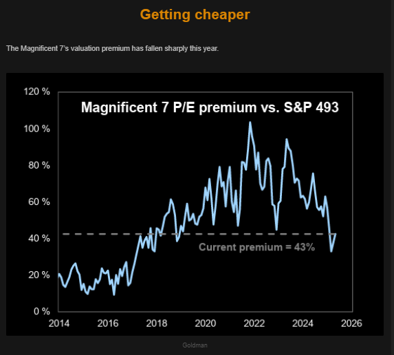 Dave: and that better relative earnings performance has narrowed the valuation gap between the Mag 7 names and the rest of the market