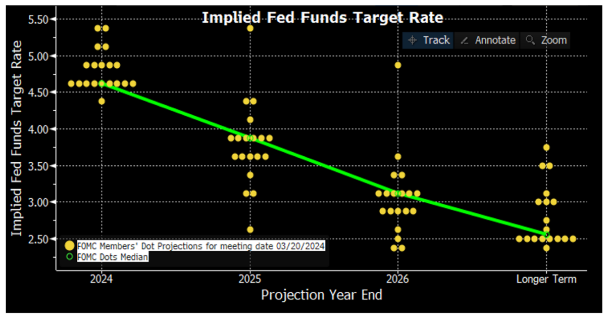 - FOMC Median Forecast Shows 75 Bps of Rate Cuts in 2024 to 4.6%