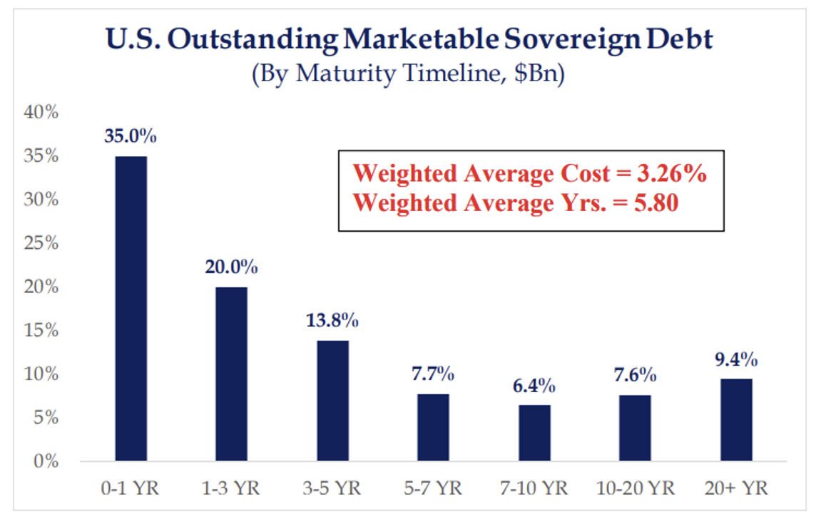 As we highlighted in our last update, nearly 70% of US gov’t debt will rollover the next 5 years. Our biggest question is who will buy all the debt… and at what level?