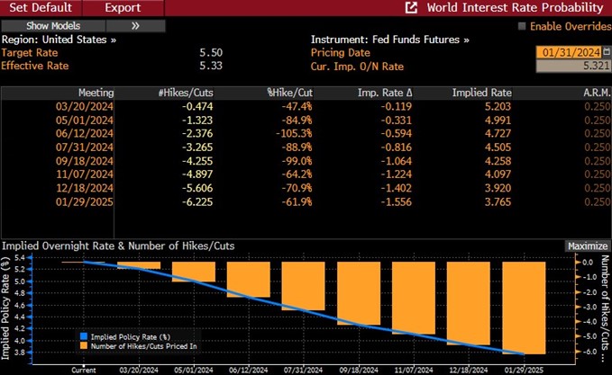 We’ve had 6 months of good inflation data. But need more good data & time to confirm and give them confidence inflation is coming down sustainably to 2%. Powell did reiterate that most members of the committee see cuts happening this year (dots say 3 cuts), although likely these are pushed to later in the year to allow the Fed more time for inflation data to continue to show improvement.
